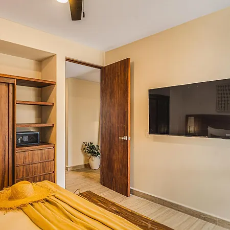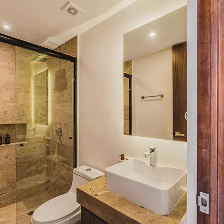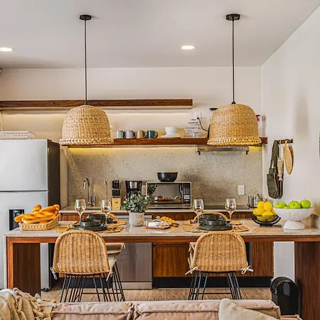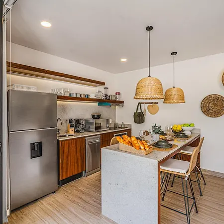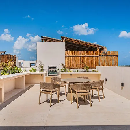 The 2-room 2 Bedroom Bliss Stunning Rooftop Gym Osmosis Desk Tulum apartment is located 1.8 miles from Playa Las Palmas and around a 25-minute walk from Panna e Cioccolato. Wi-Fi and a car park are also available at this apartment.