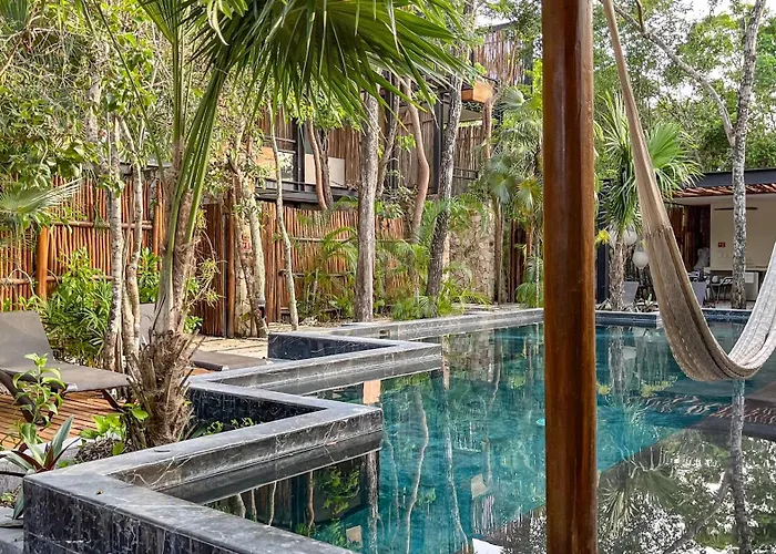 Amaka Calma Tulum Hotel, located approximately 25 minutes by foot from Avenida Kukulkan, offers a swimming pool, Wi-Fi in public areas.