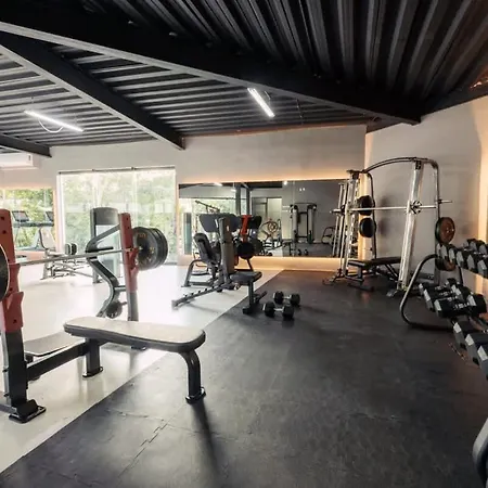 Boho Jungle Loft - Mistiq Temple 2 1Br With Tulum Vibes Apartment features an equipped kitchen. Guests can also enjoy the convenience of a fitness area, promoting a healthy lifestyle during their stay.