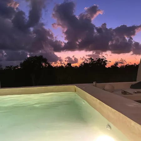 Overlooking the garden, the 2-room Charming Cozy Penthouse W Private Pool Apartment Tulum is within 2 miles of Terreno Expoferia in Tulum. Guests can relax and unwind with a Jacuzzi bath featured on site.