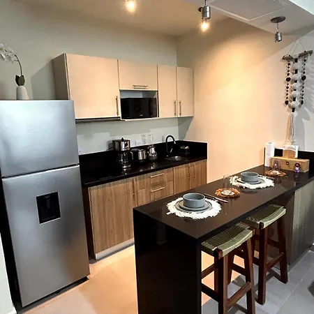 A fully-fitted kitchen is available in Experience The Charm Of Tulum, A Unique Loft In Aldea Zama Apartment, offering guests the opportunity to cook their own meals.