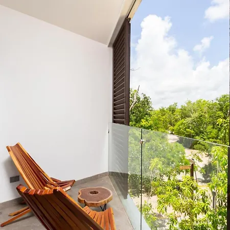 Apartment In The Jungle Maya In Tulum, 3 Br includes a balcony and a terrace with an air conditioner for utmost comfort.