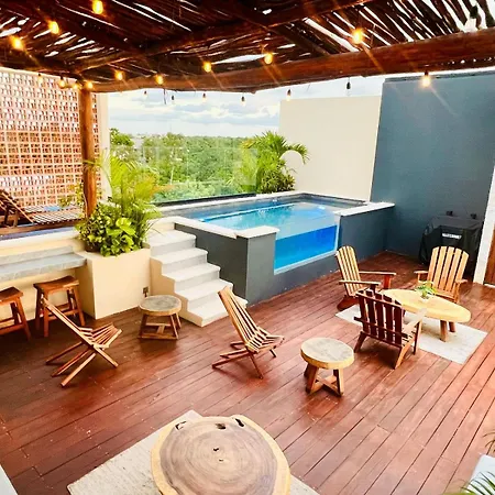 Situated 1.6 miles from Caleta Tankha Playa, the 1-room Jacuzzi Retreat Sunrise Haven Apartment Tulum provides guests with Wi-Fi for either business or leisure. This apartment lies in the La Veleta district of Tulum and offers a terrace with a swimming pool.