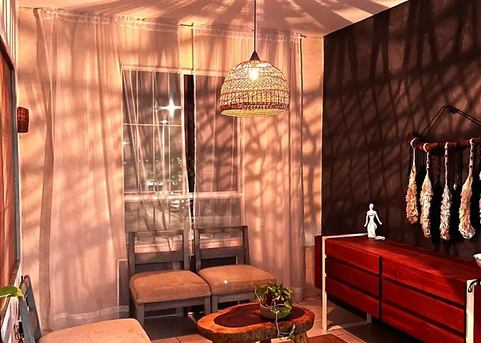 To enjoy your vacation in Tulum, stay at the 1-room Lumina Apartment Tulum, which is approximately a 10-minute drive from View Point and about 3 miles from Angelita.