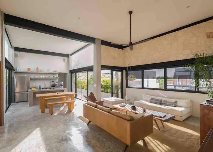 Set in the La Veleta district, the 2-room Luxury Penthouse 300M2 With Private Terrace & Pool Apartment Tulum is approximately 2 miles from Cenote Mayan Blue and offers a sauna for guests to relax in. The apartment is around 10 minutes by car from Parque Nacional de Tulum and right around the corner from Avenida Kukulkan.