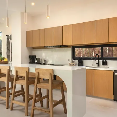 Casa Sabal - Luxury Villa, 5 Suites, Gated Community, Concierge offers an equipped kitchen with all necessary appliances, like an electric kettle, a fridge, and a kitchenware.