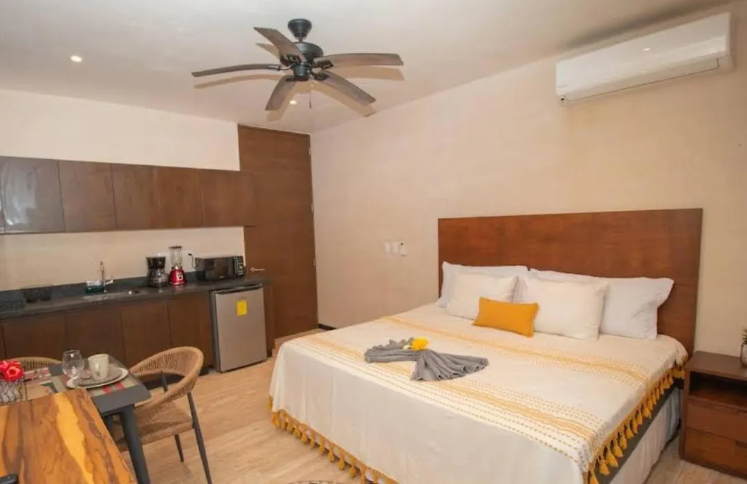 Elegante Estudio En Ophelia Tulum apartment is nestled in the Zama district, 1.9 miles from GO Snorkeling Tulum. Guests can use Wi-Fi for either business or leisure reasons.