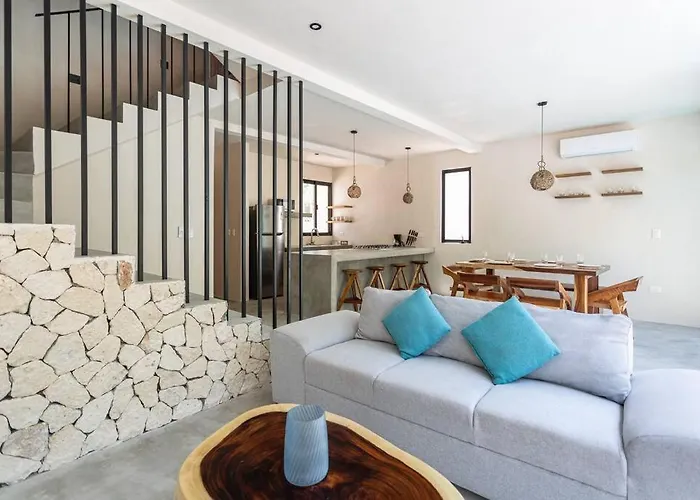 Av. Circon Edif. G2 Dep. 402The 90 m^2 Departamento Exclusivo Apartment Tulum is located 10 minutes by car from Cenote Mayan Blue and 3.1 km from Cenote Naharon.View details+More detailsCheck rates - Tuane Experience Penthouses