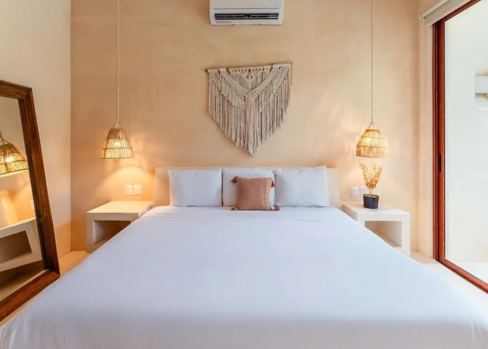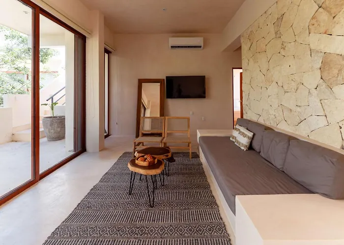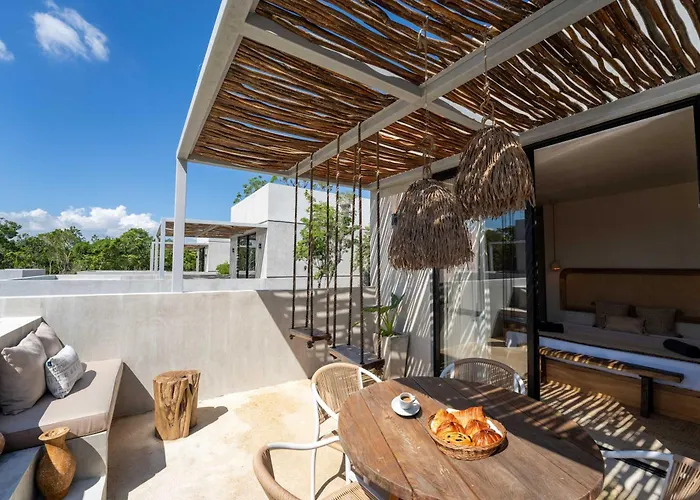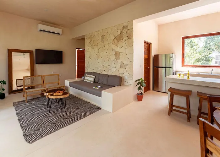 Lik Zama II Unit #113The 2-bedroom Lux Studio With Rooftop Pool Gym Private Balcony Tulum villa entices active guests with access to a fitness suite and is located nearly 25 minutes' walk from Plaza Andador Tulum. This…View details+More detailsCheck rates - Departamento Exclusivo
