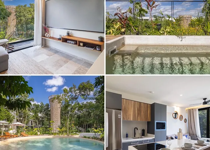 Aldea Tulum PlusTo enjoy your vacation in Tulum, stay at Aldea Tulum Apartment, which is 3.6 km from Laguna de Kaan Luum Lake and within 10 minutes' drive of Cenote Mayan Blue.View details+More detailsCheck rates - Stylish Ground-Floor 3Br Haven With Luxe Plunge Pool
