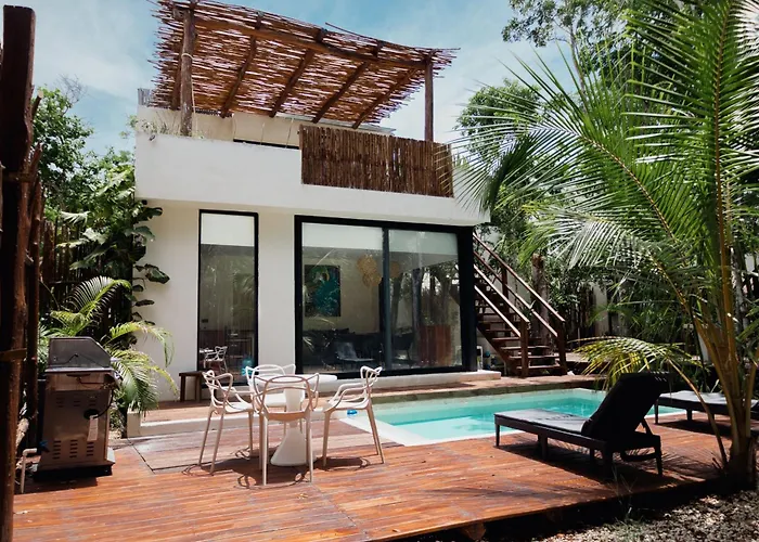 Tankah BayThe 2-bedroom Deluxe Tulum Villa Kiin is located 2.6 km from Parque De Cenotes Yax-Muul and offers guests to enjoy their evening on a terrace with a swimming pool.View details+from