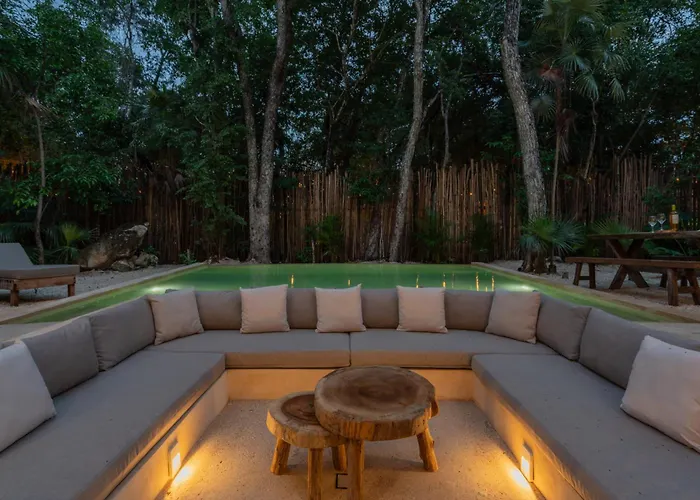 Tulum City CentreThe 4-bedroom Villa Jacinta is located within a 10-minute drive of Parque Nacional de Tulum and provides darts for active guests. Featuring an indoor pool, this property is around a 20-minute walk…View details+More detailsCheck rates - Casa K'In Tulum Luxe Jungle Retreat With Private Pool