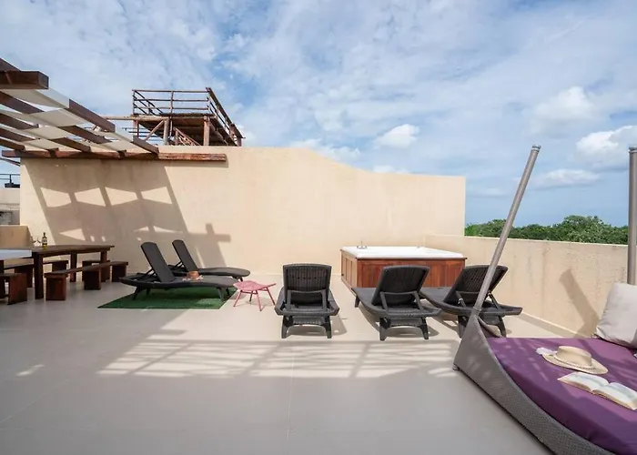 ZamaThe spacious 3-bedroom Xielo Apartment Tulum has a total area of 65 m^2 in the Zama district of Tulum enticing guests with the possibility of bicycle usage. Piramide del Pensamiento Positivo is 2.3…View details+More detailsCheck rates - Xiknal Village, Stunning Apartment Best Location