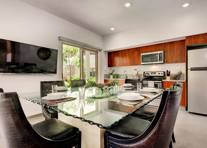ZamaTo enjoy your vacation in Tulum, stay at the spacious 218 m^2 Private Pool Apartment For Groups Tulum, which is 3.3 km from the national park "Parque Nacional de Tulum" and around 5 minutes by car…View details+from