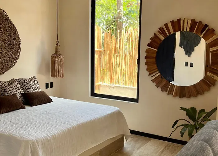 Tulum City CentreThe spacious Vida Boho Apart 15 With Special Fee To Access Hotel Bardo Tulum is located in Tulum, 25 minutes' walk from Cenote Caracon, and boasts a solarium. Offering a terrace, the apartment also…View details+from