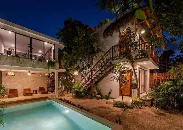 Calle 3 SurThe 6-room Etnica Tulum Residences Jungle Paradise is located around a 25-minute walk from Escondido Cenote Swimming Lake and 3.3 km from Temple of Doom. Onsite luxuries include a solarium ensuring…View details+More detailsCheck rates - Muuch Tulum