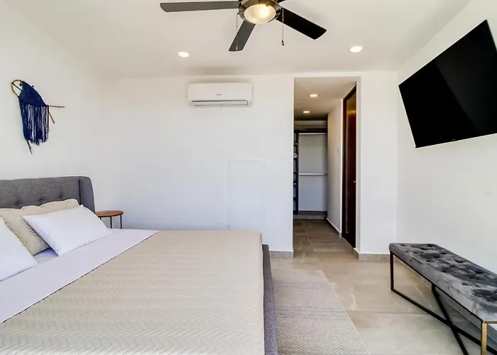 ZamaThe 2-room Gaia 304 - Ph In Aldeazama Apartment Tulum is located 2.5 km from Avenida Kukulkan and approximately a 25-minute walk from Terreno Expoferia. Staying at the spacious 90 m^2 apartment in…View details+More detailsCheck rates - Palalma Casa Tulum #32, Modern Tropics, La Veleta