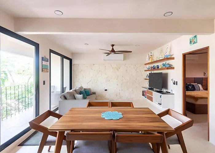 C. 3 Pte.The 1-room Departamento Amplio Con Balcon Y Mini Alberca Privada Apartment Tulum is located approximately a 25-minute walk from La Hoja Verde and 4.2 km from Parque Nacional de Tulum. Guests can…View details+from