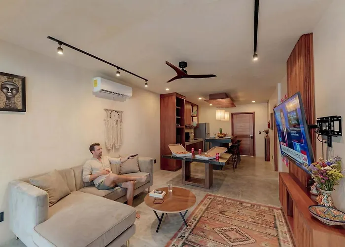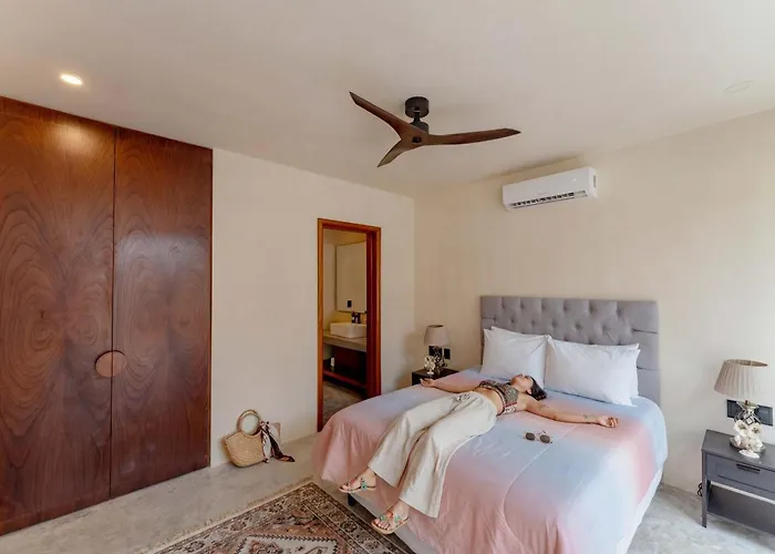 Aguasanta TulumOffering an outdoor pool, Aguasanta Tulum Boheme Chic Apartment is situated at a distance of 2.8 km from Iklab Art Center. Wi-Fi and free private parking are provided for guests' utmost comfort.View details+More detailsCheck rates - Bello Depto A 15 Min De La Playa