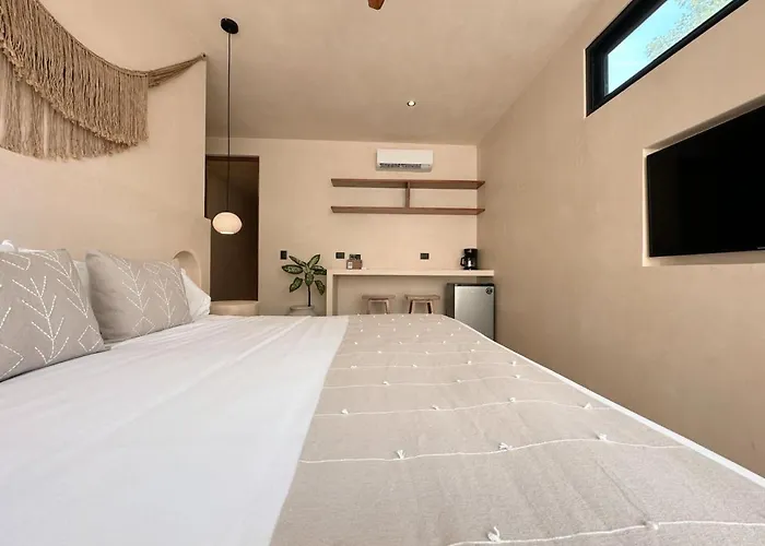 Solum Living 1Overlooking the garden, 1-room Experience The Charm Of Tulum, A Unique Loft In Aldea Zama Apartment is about a 10-minute ride from Tulum Monkey Sanctuary in Tulum. Guests will surely benefit from Wi…View details+More detailsCheck rates - Modern Apartment With 3 Pools And Security