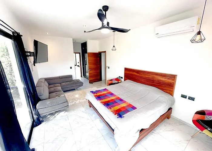 ZamaThe 2-room Caribbean Breeze Retreat At Nhoa Apartment Tulum is located 2.3 km from La Hoja Verde and around a 25-minute walk from Iklab Art Center.View details+More detailsCheck rates - La Veleta Modern Jungle Living