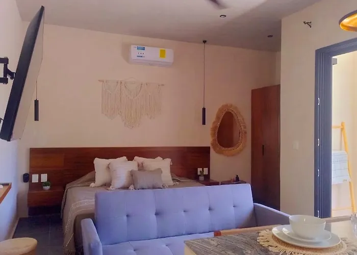 NayalThe 1-room Loft Selva Maya En Nayal Tulum apartment offers views of the garden and a location around a 25-minute stroll from Casa de la Cultura Cultural Center. Offering a terrace, the apartment also…View details+More detailsCheck rates - Casa Pelicanos Tulum Beach Mx - Next To Hotel Zone
