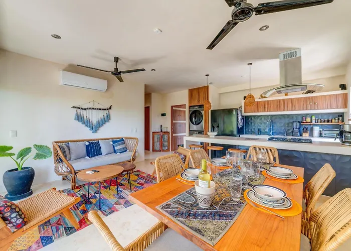 Calle 9 SurCasa Yaakun Apartment Tulum is located merely 1.8 km from Cenote Yax Kin Camping and approximately a 25-minute walk from Hidden Worlds Hilario's Well. The welcoming 9-room apartment assures guests'…View details+from