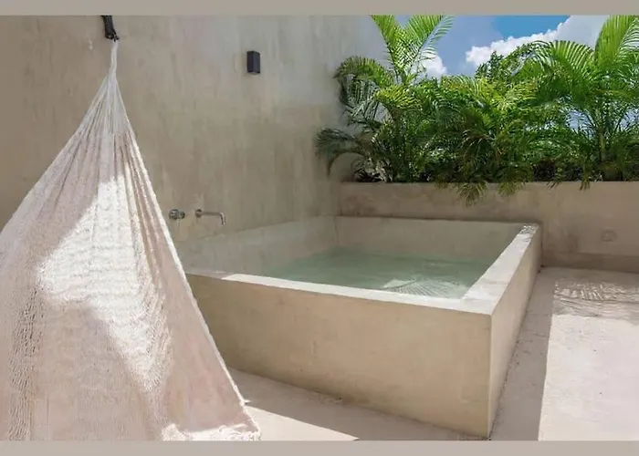 Calle 29 Neo 3 Apartamento 14The 1-room Jungle Penthouse W Private Rooftop, Ac And Wifi Tulum apartment is located in Tulum, approximately a 10-minute drive from Sian Kite Watersports, and pampers guests with a hot tub. Within a…View details+More detailsCheck rates - Serene Private Rooftop Jacuzzi Penthouse 2 Pools 5 Min To Beach + Gym