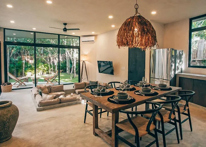 Mistiq TempleThe 1-room Jungle Luxury Stay Pools, Gym & More Tulum apartment is located 3.1 km from Cenote Mayan Blue and offers Wi-Fi for either business or leisure. Offering a terrace, this beachfront apartment…View details+More detailsCheck rates - Selvaluna Cabana Eco-Chic