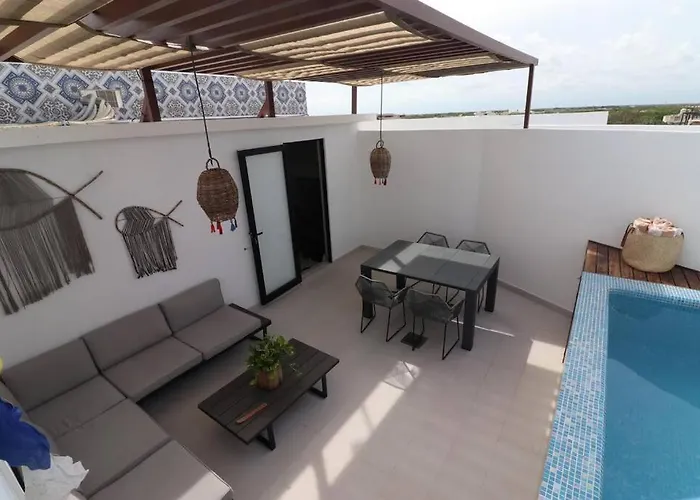 Tulum City CentreSet in the centre of Tulum, Penthouse Con Alberca Privada Y Rooftop Tulum apartment is 7 km from Parque Nacional de Tulum. Besides, this 2-bedroom apartment features a terrace joined with a swimming…View details+from