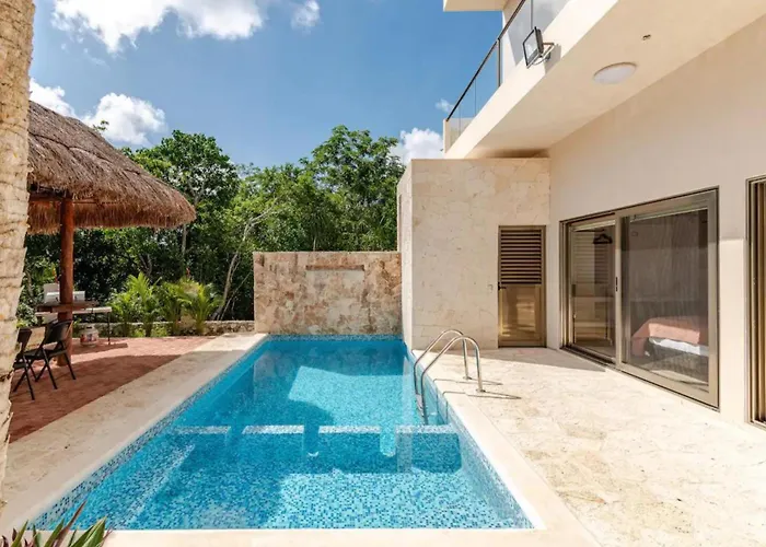 Aldea ZamaThe spacious 2-bedroom Bajocielo107 Lux 2Br Condo Priv Pool In Aldea Zama Tulum is nestled in the Zama district of Tulum, nearly 25 minutes' walk from Piramide del Pensamiento Positivo. Offering a…View details+More detailsCheck rates - Luxury Private 3Bed Villa, Garden, Pool,Security