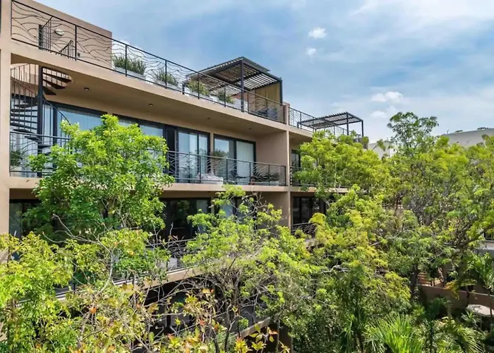 Calle ItzamnaLocated approximately a 10-minute drive from Tulum Monkey Sanctuary, the 4-bedroom Villa Mon Arca 5Bd Private Pool Tulum offers a terrace with views of the garden. The Tulum villa in situated in the…View details+More detailsCheck rates - 3Br Penthouse With Private Plunge Pool