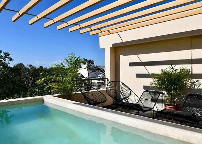 Maria Tulum Unit #309Located in the Zama district, 3Br Penthouse With Private Plunge Pool Villa Tulum is 2.3 km from La Hoja Verde and offers a plunge pool.View details+More detailsCheck rates - Tulum Cozy 3 Bedrooms Townhome-Centrally Located-Gated-Wifi