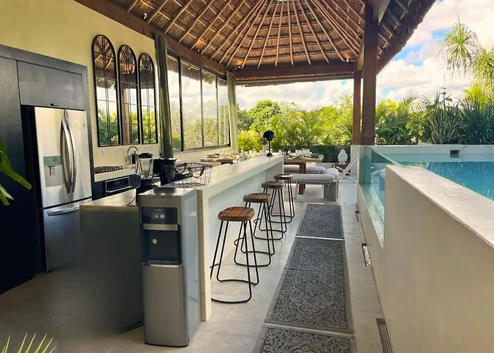 Avenida Fundadores De Tulum 103Boasting a location 2.8 km from Dos Aguas Park, the 2-bedroom Brand New Penthouse Jungle Views 2 Bdr Sleeps 6 Villa Tulum provides a terrace with garden views. Offering a rooftop pool, this holiday…View details+from