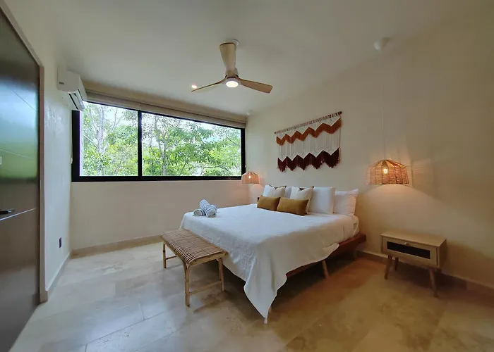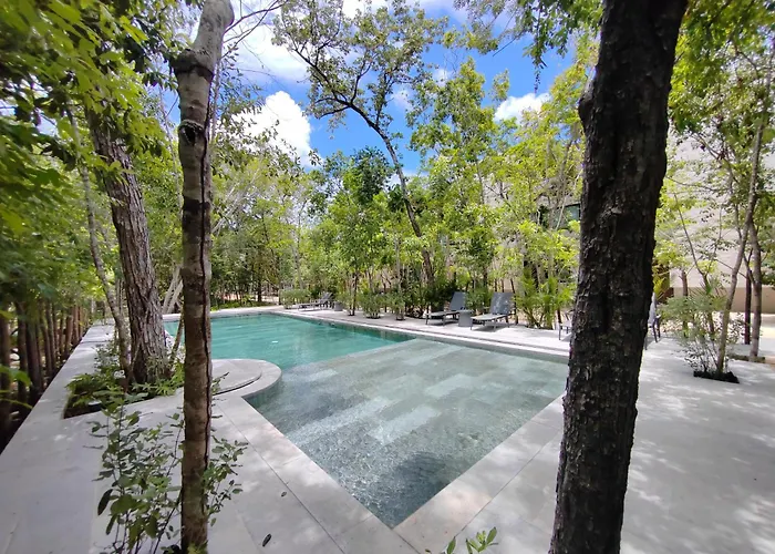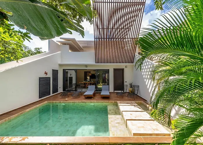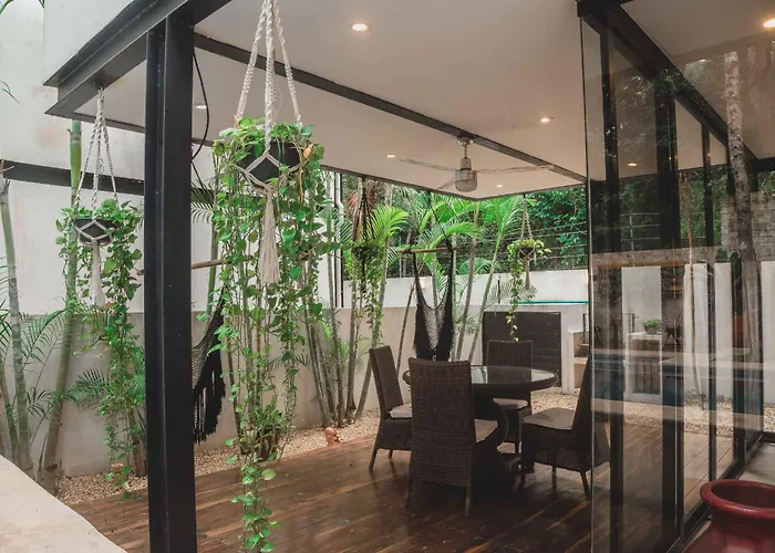 Calle Sol Ote. 1-15 LtThe 3-bedroom Casa Madrigal Mun Tulum Villa is located a mere 13 minutes' walk from Tulum Monkey Sanctuary and boasts a swimming pool provided on a terrace for a pleasant stay. Featuring pool views…View details+More detailsCheck rates - Apartamento Familiar En Aldea Zama