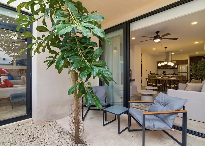 Humana Tulum Apartamento 101E Av. Coba Km 15, Tulum Quintana RooLocated a 25-minute walk from Parque Nacional de Tulum, the spacious Lovely 2Bedroom Apartment Serviced + Pool & Garden Tulum overlooks the garden. Offering a terrace, this apartment also features a…View details+from