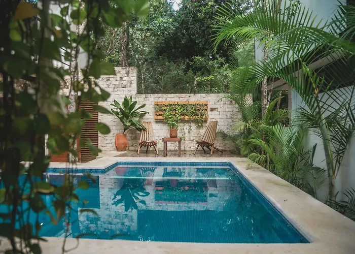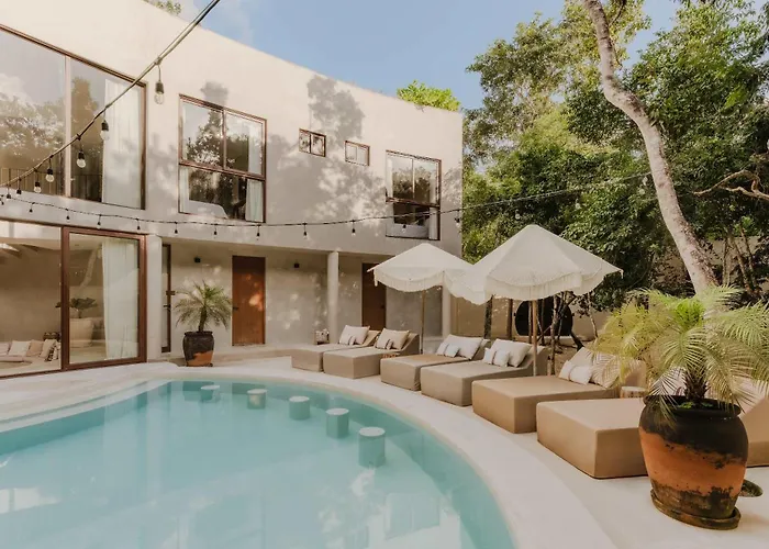Calle Sol Ote. 1-15 LtThe 3-bedroom Casa Madrigal Mun Tulum Villa is located a mere 13 minutes' walk from Tulum Monkey Sanctuary and boasts a swimming pool provided on a terrace for a pleasant stay. Featuring pool views…View details+More detailsCheck rates - Apartamento Familiar En Aldea Zama