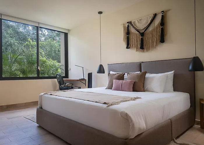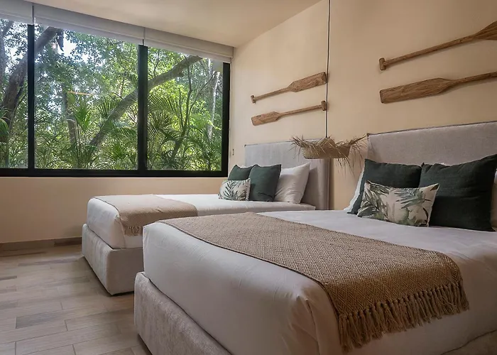 Palalma Casa TulumThe 2-room 2 Bedroom Jungle Apartment In La Veleta - Palalma Casa Tulum is located only 1.9 km from Dos Aguas Park and a 10-minute drive from Alumbra Tulum Wellness Center. This 130 m^2 apartment…View details+More detailsCheck rates - Lux 2 Bd W Balcony, Rooftop Pool In Aldea Zama