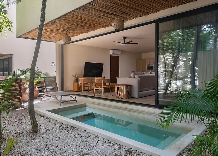 Aldea ZamaThe 25 m^2 Beach Access Sunrise Condo Private Pool Fast Wifi Tulum is a great place to stay in the Zama district, 3.3 km from Parque Nacional de Tulum. For a more exciting experience, guests can take…View details+More detailsCheck rates - Wonderful House In The Enigmatic Tulum Jungle By Yeah