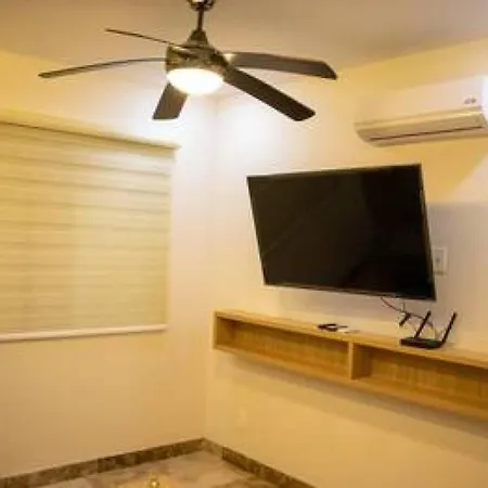 A fully furnished kitchen with a cooktop is available as part of the accommodation's self-catering amenities. The 90 ft² apartment is located within a 54-minute drive of Aeropuerto de Playa del Carmen airport.