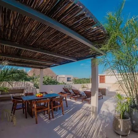 Featuring a rooftop swimming pool for guests' relaxation, Holistika 9Br Jungle Estate With Private Plunge Pools & Rooftop Tulum villa is located about 10 minutes' drive from Cenote Mayan Blue.