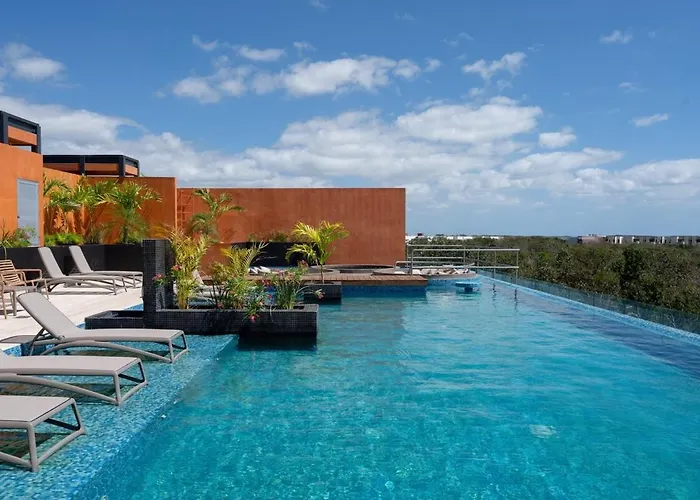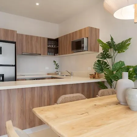 The spacious 60 m² Kune Tulum apartment is within 10 minutes' drive of Dos Aguas Park and features a sun terrace with a swimming pool. Guests can get to Sian Kite Watersports 2.2 km from the 2-bedroom apartment.