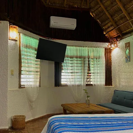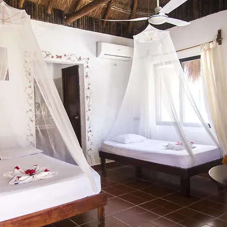 The rooms at this Tulum hotel include an air conditioner and mosquito nets, as well as media facilities like cable channels.