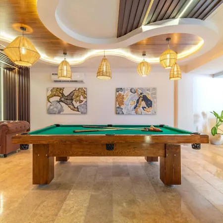 The 2-bedroom Lux 2 Bd Corner Suite W Swim Up Pool Aldea Zama Tulum villa entices guests to enjoy billiards and is located 1.9 miles from such natural sites as Paradise Beach.