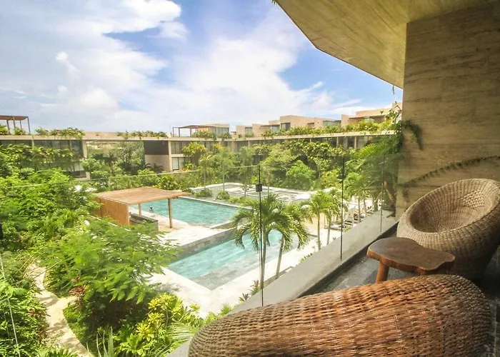 The 280 ft² apartment lies in the La Veleta district, 2.6 miles from Parque Nacional de Tulum.