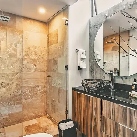 Luxury Condos Tulum - Private Cenote & Gym features a bathroom with hair dryers. Furthermore, a walk-in shower is available.