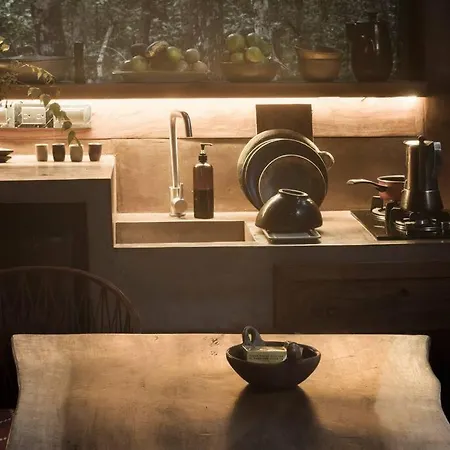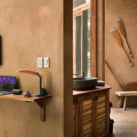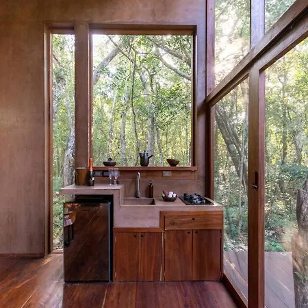The Tulum property features a fully-fitted kitchen, as well as an outdoor dining area for guests's convenience. There is also a fridge to prepare your own meal. The closest airport is Aeropuerto de Playa del Carmen, located 50 miles from this 1-bedroom holiday home. Cars for rental are available at Ojo De Agua. Design+Pool. Vive La Autentica Selva! villa, while yoga can also be arranged onsite. There are yoga instruction to keep up with active daily routine.