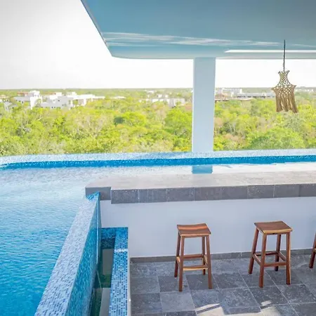 Offering a rooftop swimming pool, the 38 ft² Top Level Studio With Minifridge Microwave And Splash Pool Tulum is situated 25 minutes by foot from Xibalba Dive Center. Guests can make use of Wi-Fi for both business and leisure purposes.