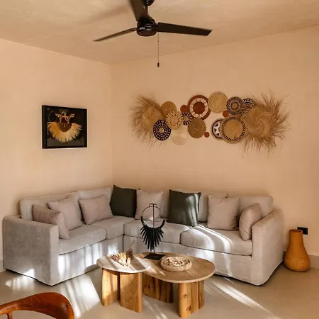 This 4-bathroom villa in the La Veleta district is situated 2.4 miles from Parque Nacional de Tulum and merely 0.7 miles from such shopping places as Tulum Underwater Dive Shop. The nearby cultural sites include Hernandez Gallery Tulum, which is situated 17 minutes' stroll away. The property provides easy access to natural wonders such as the fringed Paradise Beach (2.5 miles) and Dos Aguas Park (0.5 miles).