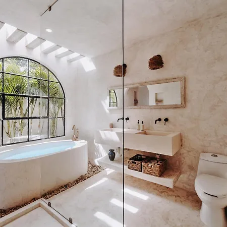 The 3-bathroom villa in the La Veleta district is situated around 10 minutes by car from Parque Nacional de Tulum and around 15 minutes by car from such shopping places as Tulum Underwater Dive Shop. Places of worship in the vicinity include La Iglesia de Jesucristo de los Santos de los Ultimos Dias Church, located 1.3 miles away. Panna e Cioccolato can be reached approximately 30 minutes by foot from this accommodation.